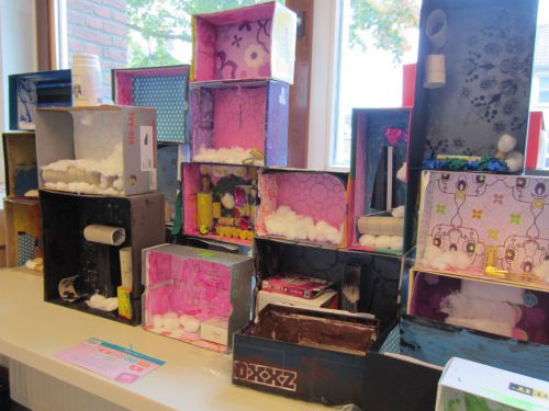 Tijdens deze handvaardigheidsworkshop gaat iedere kleuter aan de slag met zijn eigen kamer. Wil je een woon-, slaap- of speelkamer maken of misschien wel een zolder? Alles is mogelijk! En wat hoort er dan in die kamer te staan? Na dit bedacht te hebben gaan de kinderen aan het werk ieder met hun eigen doos. Hierin bouwen ze hun eigen kamer met een vloer, een plafond en muren. De wanden worden bekleed, er komen meubels in en misschien ook nog wel een raam of deur. Best moeilijk, maar oh zo leuk. Als iedereen klaar is, kunnen alle kamers samen opgestapeld worden tot een groot huis of flatgebouw waarin iedereen samenwoont. Deze workshop is ook geschikt voor de oudere groepen. Daarbij kunnen altijd extra moeilijkheidsgraden meegenomen worden.